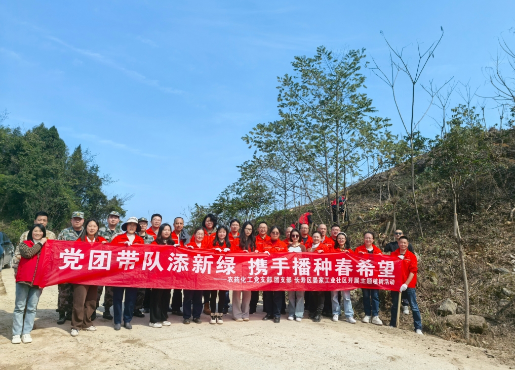 3月20日,農(nóng)藥化工黨委、團(tuán)支部聯(lián)合長(zhǎng)壽區(qū)晏家街道、長(zhǎng)壽經(jīng)開區(qū)工業(yè)社區(qū)在晏家金龍村開展了“黨團(tuán)帶隊(duì)添新綠攜手播種春希望”的主題植樹活動(dòng)